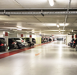 - Parking couvert, deux étages souterrains (hauteur limitée à 1,90 m).